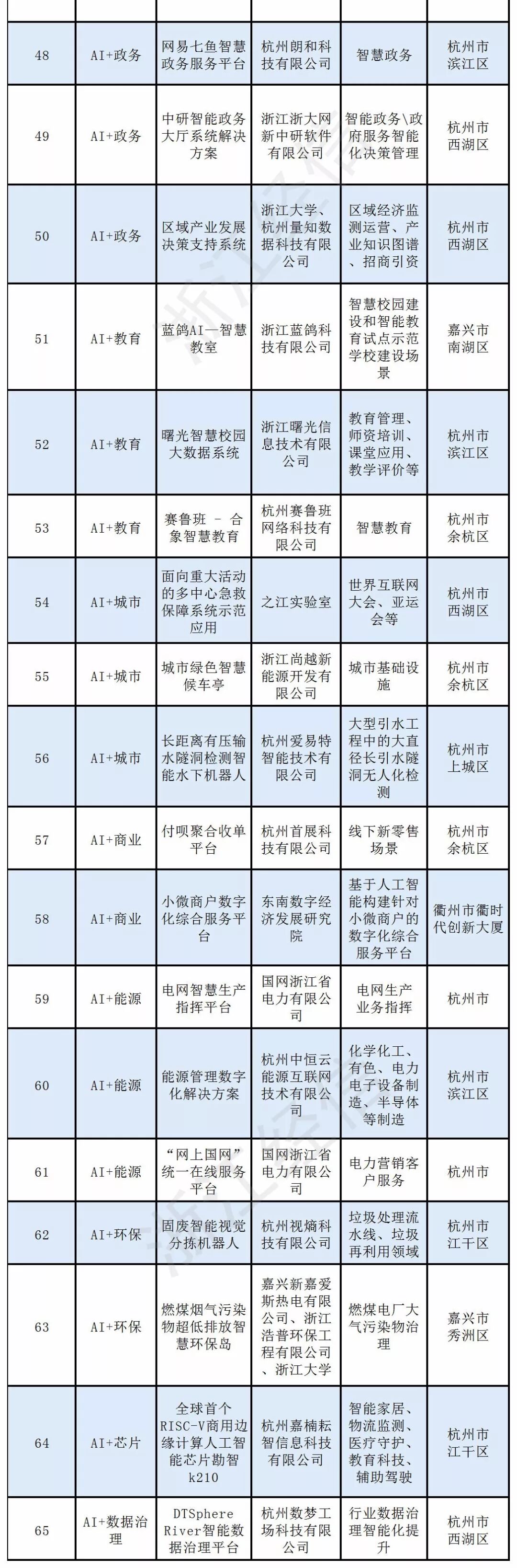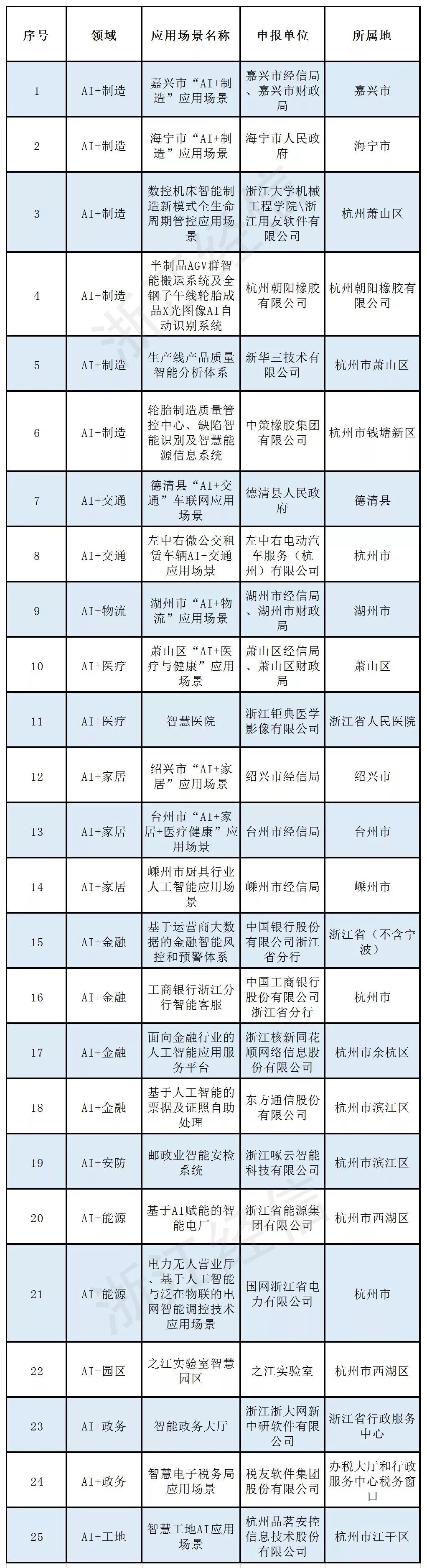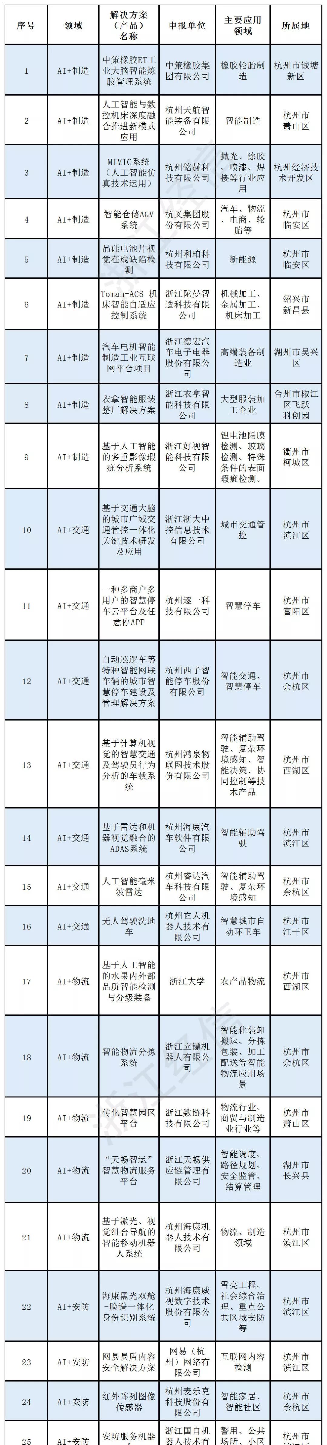 经企业自愿申报,各地经信部门推荐,省经信厅组织专家评选后,确定浙江省人工智能领军企业(高校院所)12家、行业应用标杆企业45家、行业应用培育企业23家、典型应用场景25个、优秀解决方案(产品)65个(排名不分先后),快来看看吧。